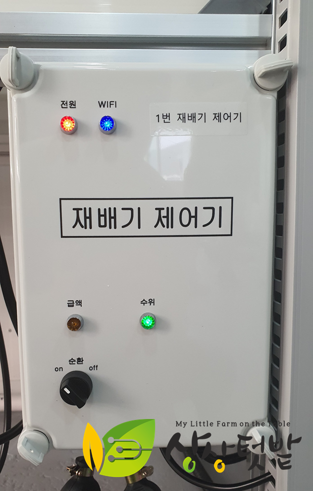 재배기/양액기의 제어 및 작동상태를 조정하고 확인할 수 있는 각종 제어함을 설치하는 단계입니다.