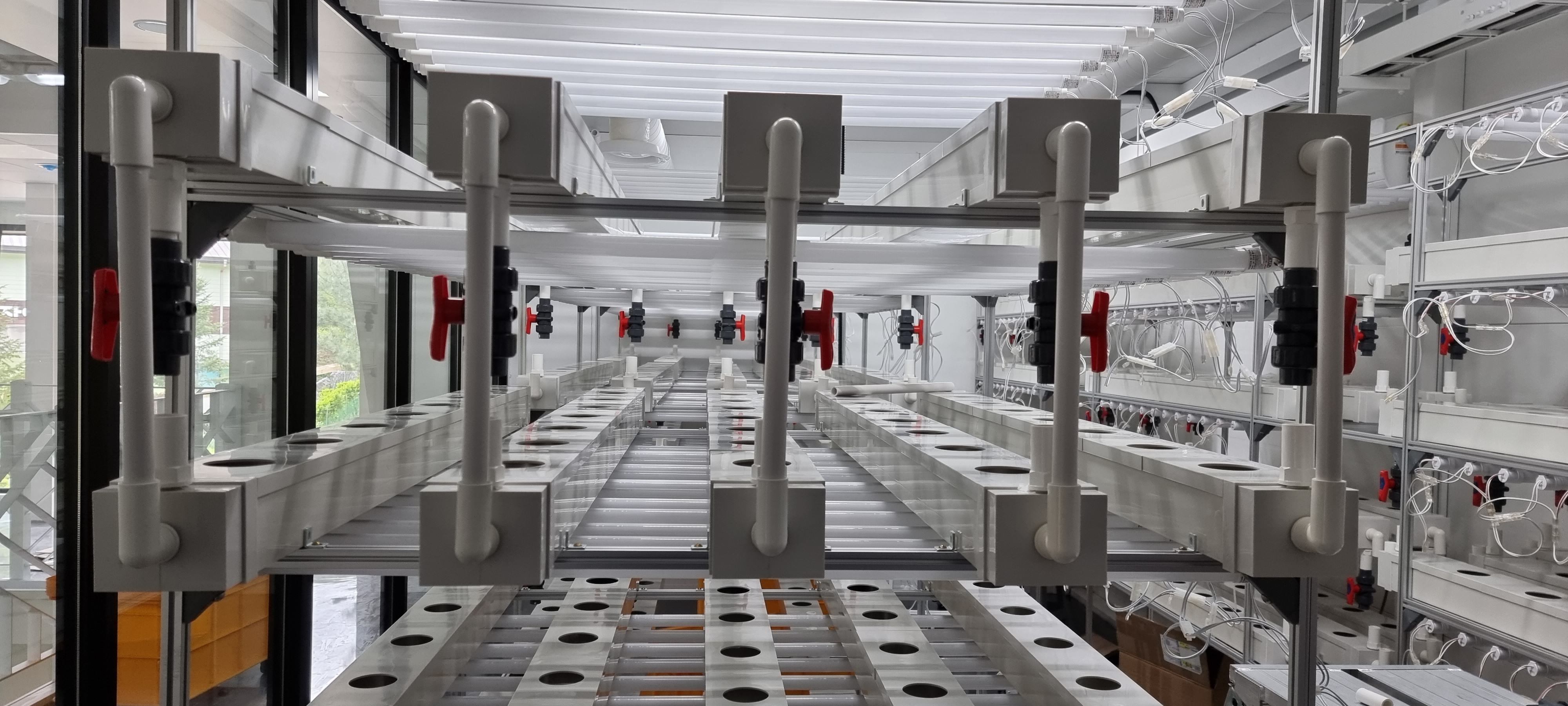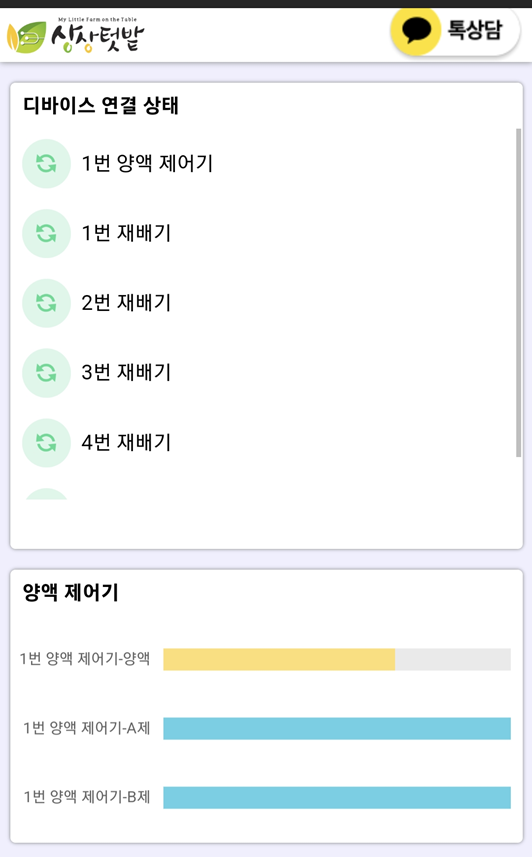 상상텃밭의 라인형 베드는 수위조절을 위한 장치가 마련되어 있습니다. 초기 재배 단계에서는 하단부 밸브를 잠그고 담액경 형태로 재배를 진행할 수 있으며, 생육 후반기나 수확 후 청소 단계에서 재배베드의 양액을 전부 폐수해야 할 때는 하단부 밸브를 열어서 수위를 낮출 수 있습니다.