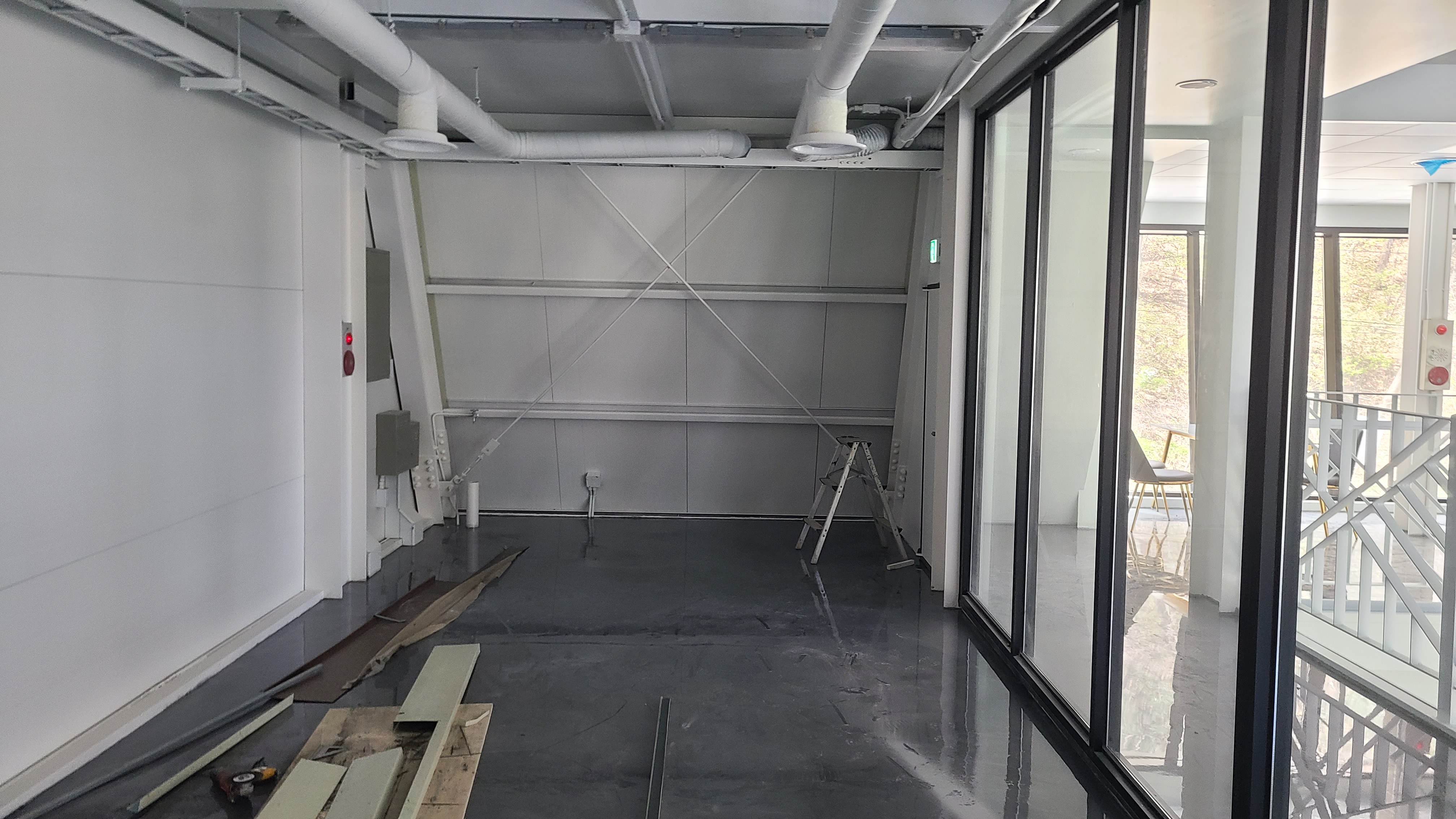 설치 공간 및 자재 공간을 확보합니다. 10평도 안되는 작은 공간이라서 부득이하게 바깥에 자재를 쌓아두고 작업을 해야 했습니다. 다행히도 바깥 카페 역시 리모델링 중이라서 공사간에 조심해야 할 부분은 없었습니다.